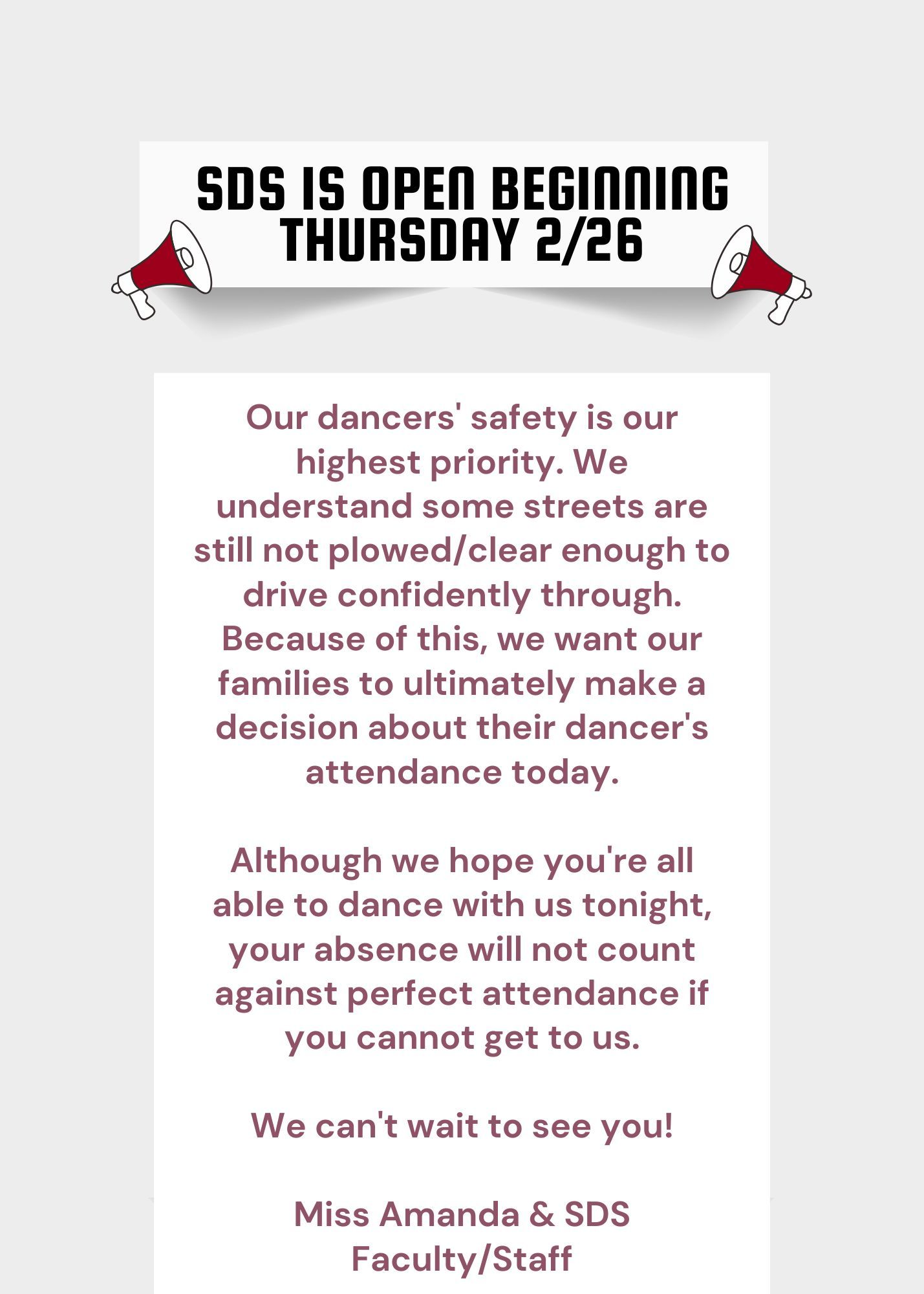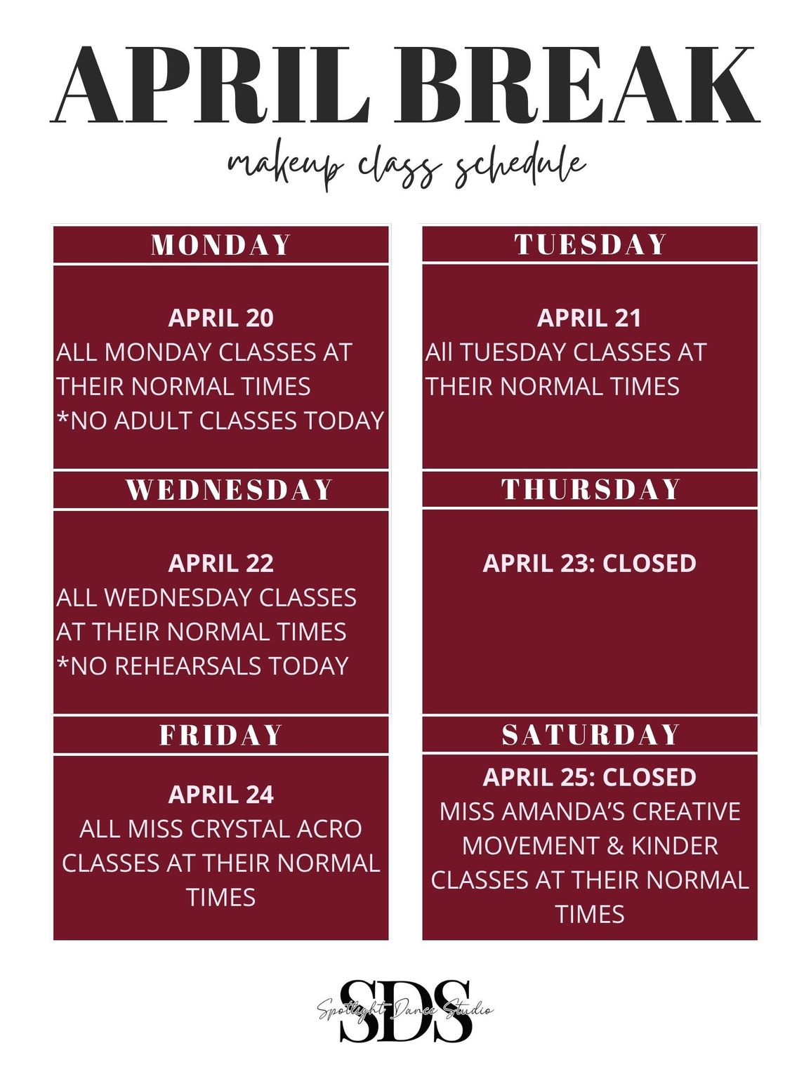 SDS offers classes in creative movement, ballet, tap, jazz, contemporary,