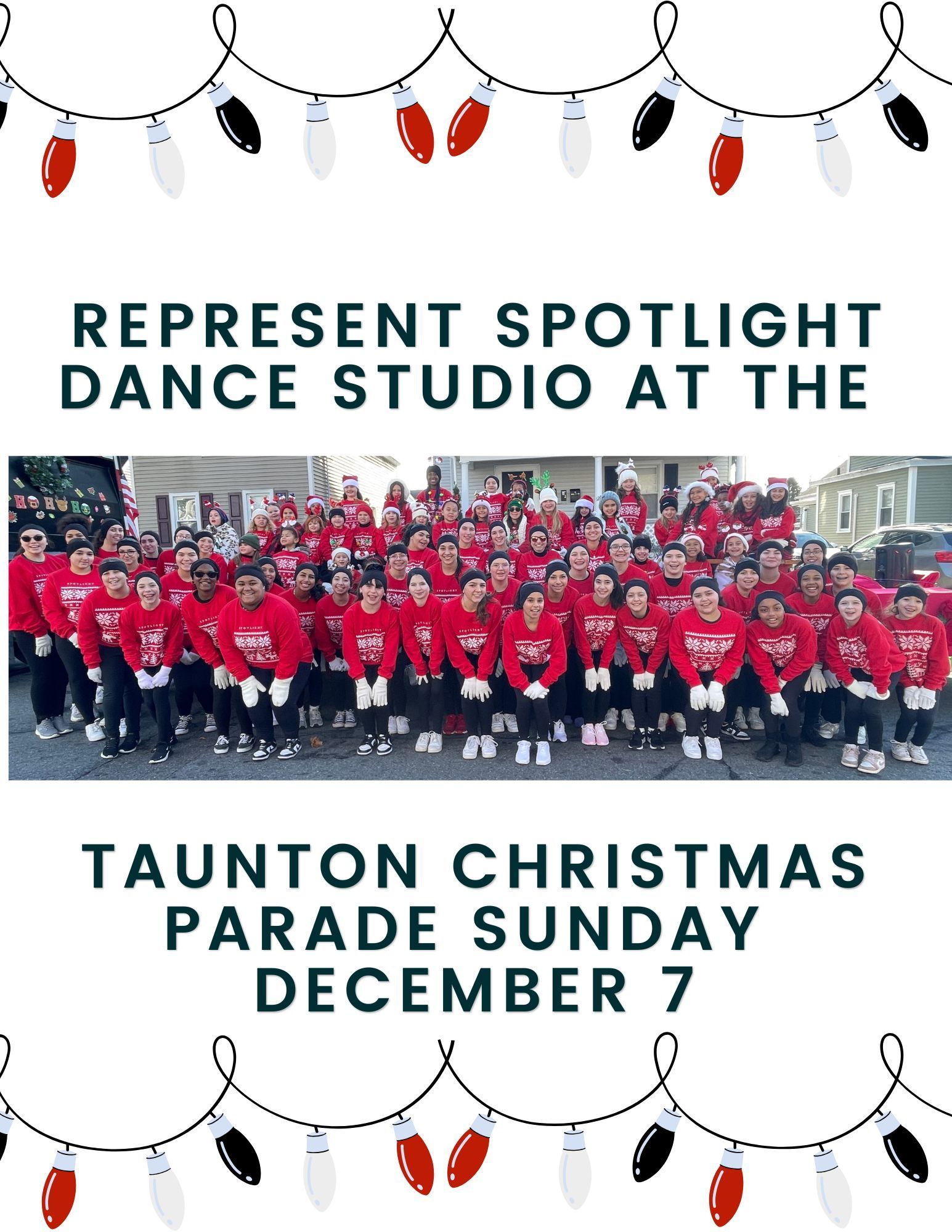 If you would like to sign up to participate in the Taunton Christmas Parade SUNDAY DECEMBER 7 representing Spotlight Dance Studio, please fill out the google form below.